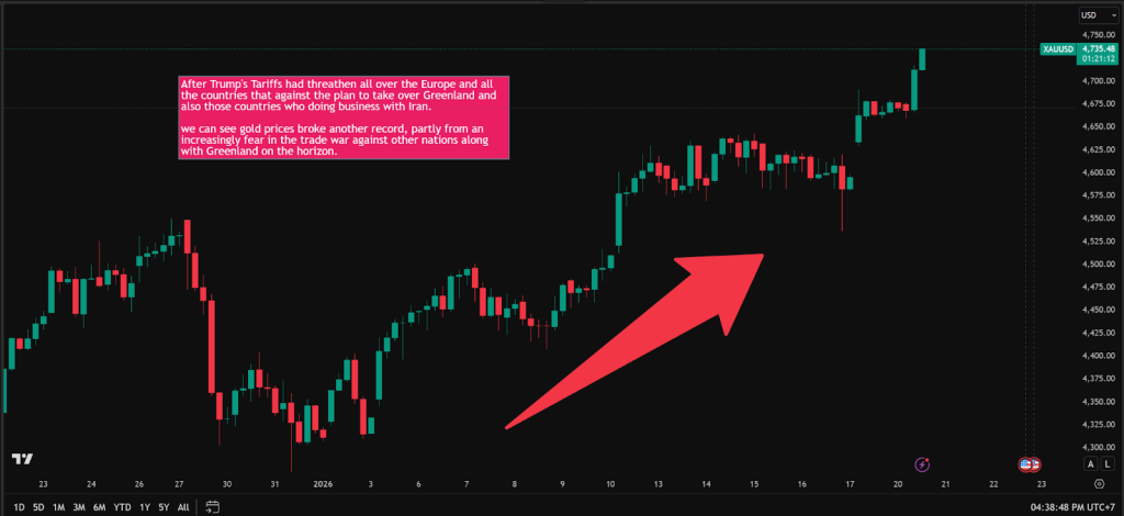 With these tariff threats against the nations we mentioned above, and combined with the attacks on its plan, plus Greenland’s threatening fear all over the topic, all of these are pushing the investor to seek a better and safer asset such as Gold, leading the gold prices to reach even higher recently.